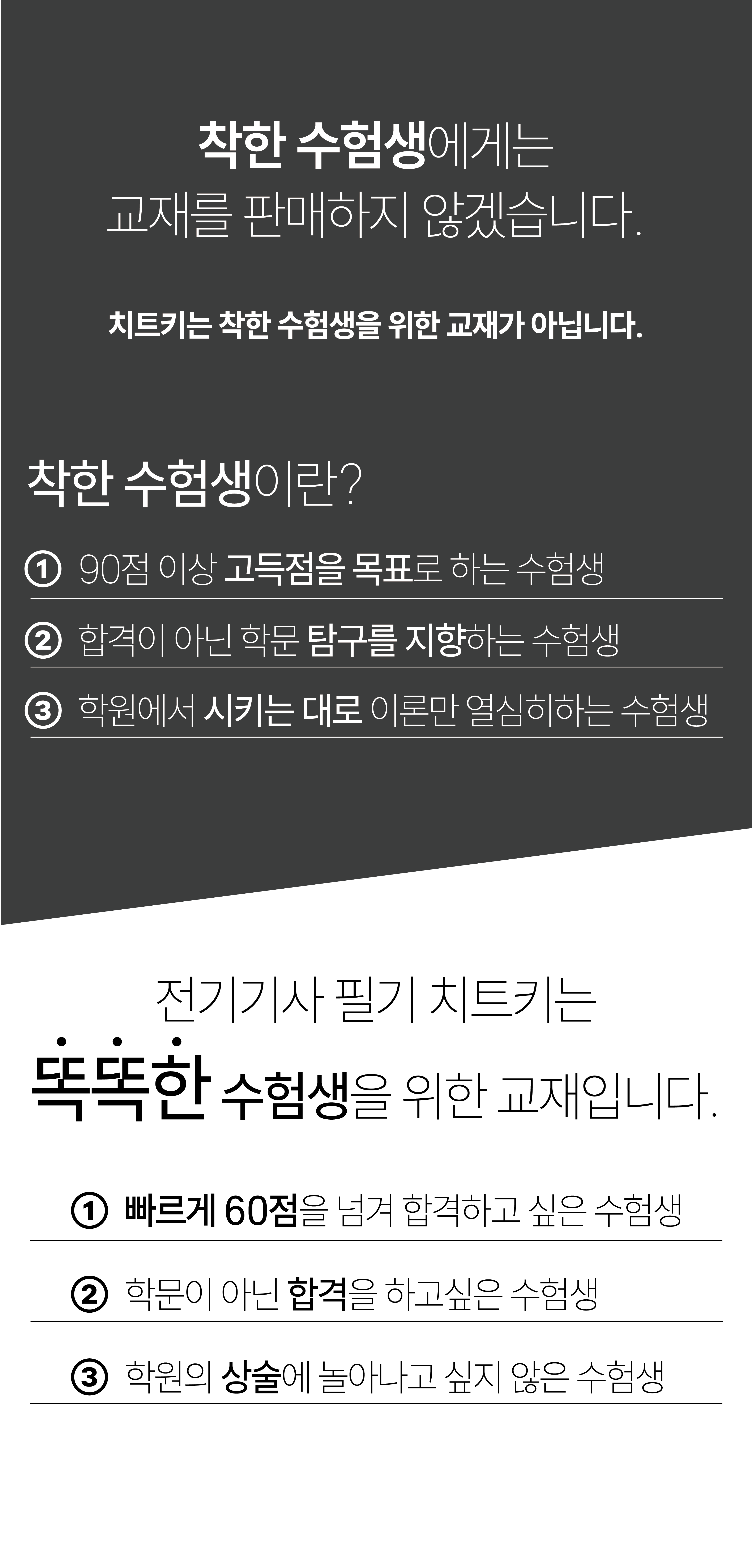 안녕하세요. 저는 2025년 2회차 전기기사와 전기공사기사 필기시험에 동시에 합격한 수험생입니다.지금 이 글을 쓰는 이 순간, 제 손에 두 개의 필기 합격이 있다는 사실이 아직도 믿기지 않을 만큼 감격스럽습니다.하지만 이 결과는 결코 단숨에 이뤄진 것이 아닙니다. 실패와 좌절, 그리고 진로에 대한 치열한 고민 끝에 ‘진짜 나에게 맞는 공부법’을 찾아낸 과정의 결실이었기에 더욱 값졌습니다.지금 이 글을 읽고 있을 누군가에게 제 이야기가 도움이 되었으면 하는 간절한 마음으로 수기를 적습니다.대학교 3학년, 첫 도전의 시작과 반복된 좌절처음 자격증에 도전한 건 대학교 3학년 때였습니다.당시에는 전기산업기사 시험에 도전하며 “그래도 열심히 하면 되겠지”라는 마음으로 다산에듀 인강과 교재를 따라 공부했지만, 끝없는 이론의 벽과 과도하게 방대한 기출문제집에 매몰돼 버렸습니다.그렇게 1회, 2회, 3회차 모두 불합격. 매 시험이 끝날 때마다 제 자신을 탓했고, 자존감은 바닥을 쳤습니다.대학교 4학년, 다시 전기기사 도전… 또다시 실패“이번엔 전기기사다. 이번엔 다르겠지.”마지막이라는 각오로 엔지니어랩 인강으로 갈아탔습니다.하지만 문제는 똑같았습니다.개념은 쌓이는데 문제에 적용이 안 되는 공부.기출을 풀면 “내가 이걸 어디서 배웠더라?” 하는 생각만 들 뿐, 연결이 되지 않았습니다.대학원 진학 그리고 결정적 전환점그렇게 자격증을 뒤로한 채 저는 대학원에 진학했습니다.하지만 학문적 연구보다는, 저는 공기업으로 취업하고 싶은 사람이란 걸 곧 깨달았습니다.이미 공기업에 대한 자격증 영어와 추가 가점 자격증을 취득한 상태였기 때문입니다.‘이건 내 길이 아니다’라는 결론이 섰고, 2025년 4월, 저는 스스로 대학원 자퇴를 결정했습니다.이후 유튜브를 뒤지며 ‘진짜 도움이 되는 공부법이 뭘까’ 고민하던 중,제 인생을 바꿔놓은 사람, 우순쌤을 만나게 됩니다.전기기사 & 전기공사기사 필기 동시합격! 이렇게 공부했습니다1. 전기치트키 3회독1회독은 인강을 들으며 개념을 파악2회독부터는 인강을 보지 않고 문제 중심 복습3회독에서는 문제만 보며 개념 연결 포인트: “묻지도 따지지도 말고 무조건 회독”이 진리였습니다. 인강은 시간 낭비가 될 수 있으니 최대한 압축!2. 타우 문제집 3회독A등급 문제는 직접 풀기B, C등급은 빠르게 답을 외우는 방식으로 반복이렇게 3회독을 돌리며, 기출 유형을 무조건 익숙하게 만들었습니다.포인트: 문제를 “풀려고 하지 않고, 기억하려 했다”는 점이 암기의 효율을 높였습니다.3. CBT 기출 통암기다음 회차 시험지를 그대로 외웠습니다.2025년 1, 2회차, 2024년 1,2,3회차, 2023년 1,2,3회차, 2022년 3회차까지 통암기포인트: ‘문제-답, 문제-답’ 단순하지만 효과적인 본능적 패턴 학습4. 복원문제 풀고 암기시험시작 2주후 부터 모든 학원, 유튜브에서 복원문제가 나오기 시작합니다.저는 나오는 족족 다 풀고, 다 외웠습니다.포인트: 복원문제의 복원률은 매우 높기 때문에, 실전 적중률이 압도적으로 올라갑니다.쌍기사 필기 합격, 그리고 느낀 점정말 말 그대로 ‘이제야 길이 보인다’는 기분이었습니다.누군가는 쉽게 합격하는 시험이라 여길지 모르지만, 저에게는 이 자격증이 인생을 다시 설계하게 해준 전환점이었습니다.과거의 저처럼 인강에만 매달리다 지치고, 공부 방법을 몰라 방황하고, 자기 길이 맞는지 헷갈리는 분들이 있다면,꼭 말해주고 싶습니다.“공부법이 바뀌면 결과가 바뀝니다. 방법이 틀렸던 거지, 당신이 틀린 게 아닙니다.”이제는 실기! 다시 도전합니다이제 2회차 실기에서 동시합격을 목표로, 오장육부 실기 교재를 통해 다시 공부를 시작합니다.그리고 꼭 다시 실기 합격 수기로 찾아뵙겠습니다.마지막으로, 수험생 여러분께너무 많은 인강은 독이 될 수 있습니다.이론과 기출을 끊임없이 연결시키세요.CBT와 복원문제, 절대 무시하지 마세요.그리고 절대 포기하지 마세요.제가 그랬던 것처럼, 당신도 할 수 있습니다.“지금의 실패는 방법의 실패일 뿐, 당신의 실패가 아닙니다.”📷구매인증(교재 또는 구매내역을 인증해주시면 후기 이벤트 경품을 보내드려요😊)